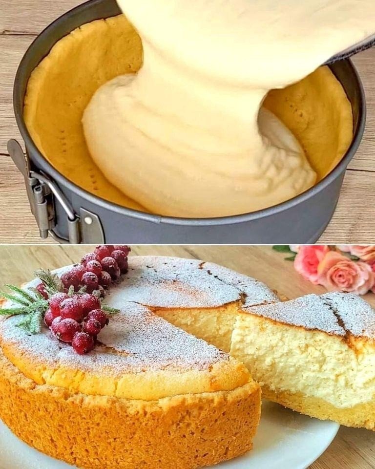 Bolo de creme com base de massa quebrada. Ingredientes: