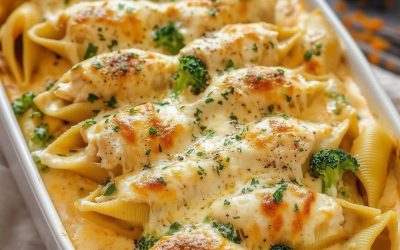 Conchas recheadas com frango, brócolis e molho Alfredo Ingredientes 2 xícaras de frango grelhado desfiado 1 pacote de conchas grandes…