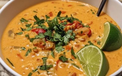 Sopa de lentilha vermelha com curry, leite de coco e limão.
