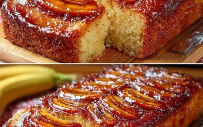Bolo brasileiro com bananas caramelizadas. A receita pode ser encontrada nos comentários abaixo.