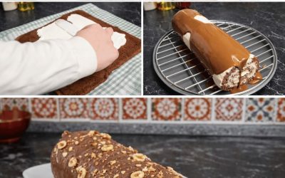 Este rocambole de chocolate é composto por: um bolo de cacau macio, um chantilly leve com sabor de caramelo, e…